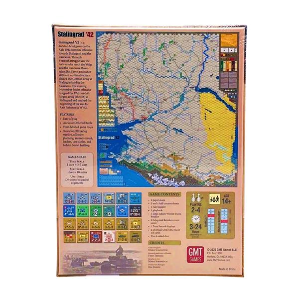 Stalingrad ‘42 is a division-level game on the Axis 1942 summer offensive towards Stalingrad and the Caucasus. Historically, this epic struggle lasted for 6 months and saw the Axis armies reach the Volga and the Caucasus Mountains. But Soviet resistance stiffened and final victory eluded the German army at Stalingrad and in the Caucasus. The ensuing November Soviet offensive trapped the Wehrmacht’s largest army (the 6th) at Stalingrad and marked the beginning of the end for Axis fortunes in World War II.