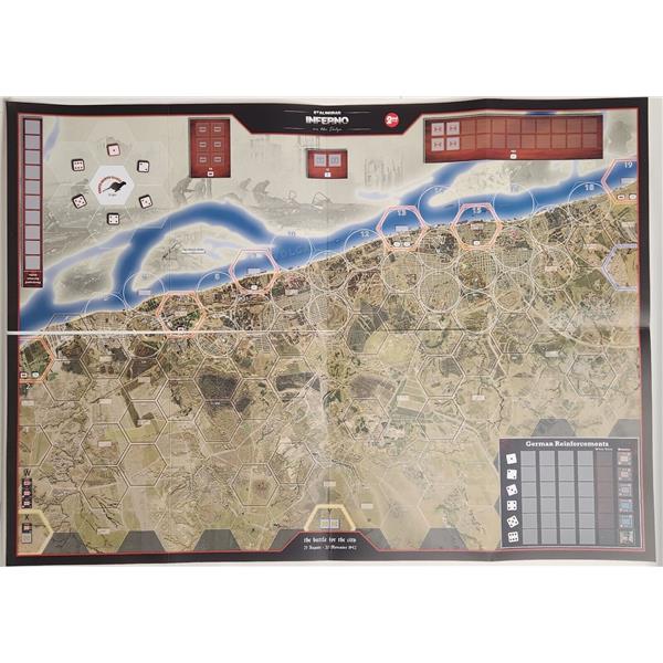 "Inferno's" map is generated from highly detailed air recon photographs and depicts both the city and outskirts in extreme detail, as it was in August 23, 1942, when the battle began. The map scope includes the main city and the its suburbs from Latoshinka to Kuporosnoye, along 30 km of the volga river, and extends to the west as far as Gumrak Airfield, Orlovka, and Alexandrovka. Map scale is 1:33000, with hexes that represent 1,2 to kilometer along each side.
