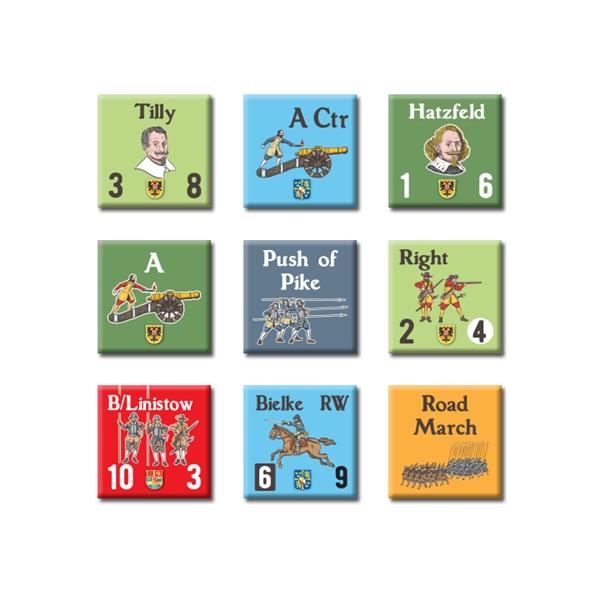 Thirty Years War Battles is a grand tactical two player system for simulating battles in Europe during the first half of the 17th century. Each game in the system is based on one of the major battles of the 30 Years War. Each battle has its own map, special rules and counters representing the military formations which participated in the original action. The rules model the overall effects of the weapons and tactics of the great era of pike and shot, and include combat, leadership and morale. Players command armies of infantry, cavalry and artillery, each with their own special capabilities, as well as the great leaders who took the field in this era. Each hex on the map represents 150-200 meters. Each game turn (GT) represents 45 minutes to one hour. Most cavalry and infantry units represent one or two regiments or battalions. Each combat strength point represents 75 to 150 men, depending on the quality of the army and assignment of light guns to the unit. Each artillery unit represents four to six heavy or medium guns.
