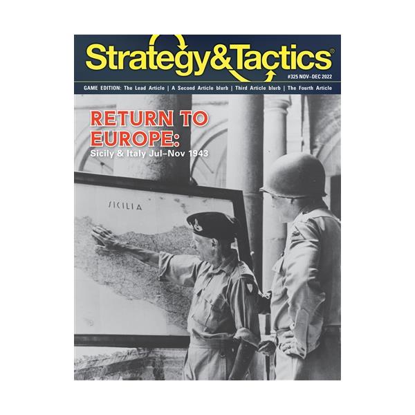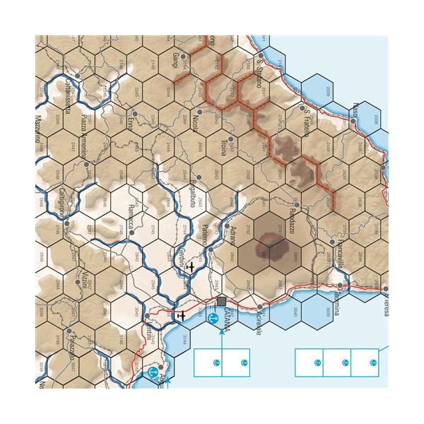 Return to Europe: Sicily & Italy July–Nov 1943 is a two-player sequel to Desert Fox Deluxe covering the Allied invasion of Sicily and southern Italy. The operation was viewed as only a limited offensive to secure the Mediterranean and force Italy out of the war. The Germans also intended only a limited effort to delay the Allies while a strong defense was established at the far north of the peninsula. Both sides scented greater possibilities in the early going and were drawn into what would become a grueling and expensive campaign. There are two scenarios, each covering all or part of the campaign. One player or team of players commands the Allied forces, the other the Axis. In general terms the Allies are trying to knock Italy out of the war and seize the greatest amount of territory as possible, while the Axis seeks to maintain control of Italian territory for the maximum amount of time. Each game turn represents one month with up to six player impulses in each GT. Each hex represents 6.7 miles (10 kilometers) from side to side. Combat units represent brigades/regiments to companies.