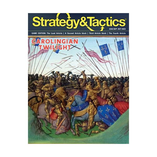 Carolingian Twilight: Decline of an Empire AD814 is a two to six-player game covering the decline of the Carolingian Empire following the death of Charlemagne (Charles the Great) in AD 814. The Salic Law of the Franks required that at a man’s death, his property was divided among all his sons, which led to civil wars among Charlemagne’s descendants when the inheritance in question was the Empire itself. From the various wills, wars and treaties dividing and redistributing the Empire during the 800s, emerged the nuclei of the modern states of France, Germany, and Italy. Each scenario depicts the period following a particular division of the empire, with each player taking on the role of one of the heirs. The object of the game is to reunite the Empire under a single ruler, while fending off not only fraternal Frankish rivals, but also the hostile surrounding foreign powers. Each game turn represents 1 year. The map scale is one inch to 75 miles. Each area is an historical region. Each unit represents 100-5,000 soldiers (plus camp followers, etc.).