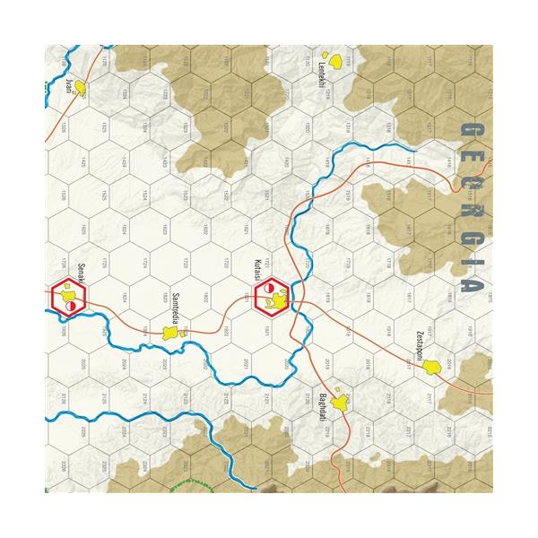 Tanks of August is a two-player game of the conflict in Georgia and the two separatist entities of South Ossetia and Abkhazia during mid-August 2008. The Russian player is attempting to destabilize Georgia, destroy infrastructure and her armed forces, and render it unable to join NATO, thus leaving it as a “buffer zone,” as would happen in Ukraine during the next decade. By consolidating the separatist entities of South Ossetia and Abkhazia, Georgia would face a dilemma: recognize the independence of the two breakaway regions and try to join NATO or remain a “frozen conflict” and therefore unable to join NATO or the European Union in the foreseeable future.