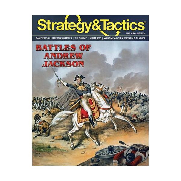 Andrew Jackson’s Battles is a tactical simulation of battles on the American frontier during the early 19th century, concentrating on the two major actions (Horseshoe Bend and New Orleans) in which Andrew Jackson participated. While these battles often involved relatively small armies for the era, they proved decisive in shaping the future of the United States. Each game in the system is based on one battle of this period, with its own map, special rules and counters representing the military formations which participated in the original action. The rules model the overall effects of the weapons and tactics in an era in which regular tactics were tempered by frontier fighting, and include combat, leadership and morale.