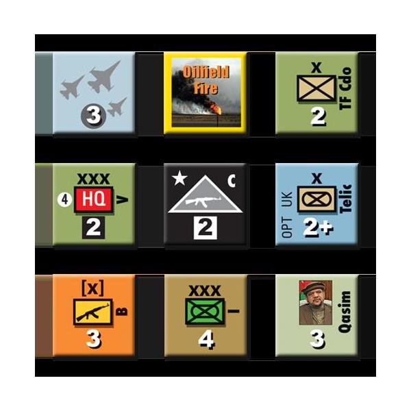 OPFOR actions can be affected by the Persian Gulf Instability Index (PGII), which can shift throughout the game and generate events. CENTCOM can also be played by two or more players, controlling different parts of CENTCOM operations. This is explained in the Optional rules.