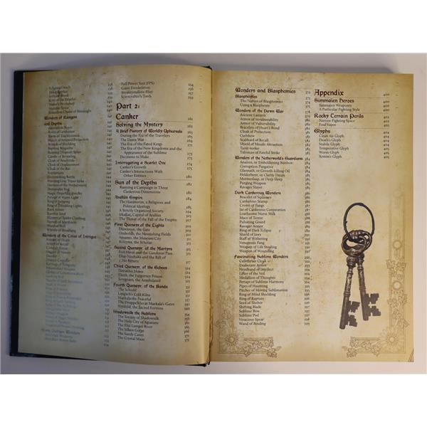 Encyclopedia can be used as a dynamic sandbox. The worldbuilding within features complex geopolitical and supernatural dynamics between powerful individuals and factions, providing a vast, changing landscape under the growing, looming threat of a dark entity: Canker.