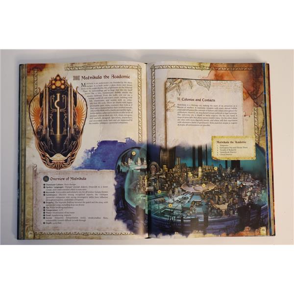 15 Unique Cities. Each city described within Encyclopedia Volume 2 has its own atmosphere and typical adventure hooks. Visit the mining city of Fasgadh, between surface and depths; the pacifistic Dni, which is no stranger to schemes, or the motherhouse of the powerful Amamordo mercenary company. More than fifteen cities are described in detail, in addition to numerous regions, ruins, and other sites of mystery.