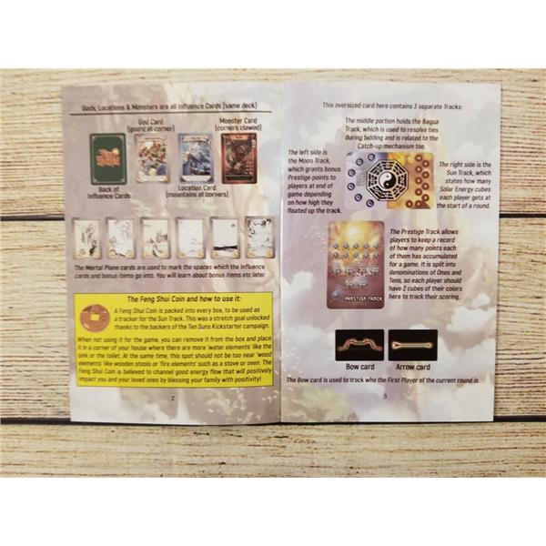 This is a 'blind bidding' game that revolves around the legendary archer from China, Hou Yi, who shot down 9 Suns and saved China from scorching heat. Players are Primordials who draw their energy from the 10 Suns. Before the Suns all disappear, players rush to gain enough prestige to secure a permanent position among the Gods. The game features famous locations in China like the Great Wall, Xi An, and many others. It also features other Gods and legends of ancient China, including Chang'E and the Jade Rabbit.