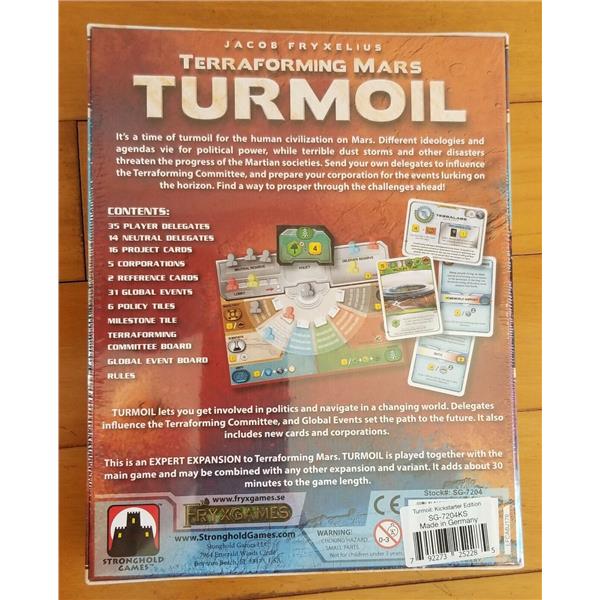 This listing is for the Kickstarter Exclusive Edition of the Terraforming Mars Expansion "Turmoil". You need a copy of Terraforming Mars core game to play this game. It includes all Kickstarter Exclusive Stretchgoals: