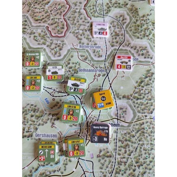This is the first game in the Central Front series of games. It will feature nuclear weapons, chemical weapons, helicopter support, air support, electronic warfare, and many other aspects of modern warfare. Future games in the series will include the Hof Gap defense, the German Northern Plains defense and the last stand at Berlin.