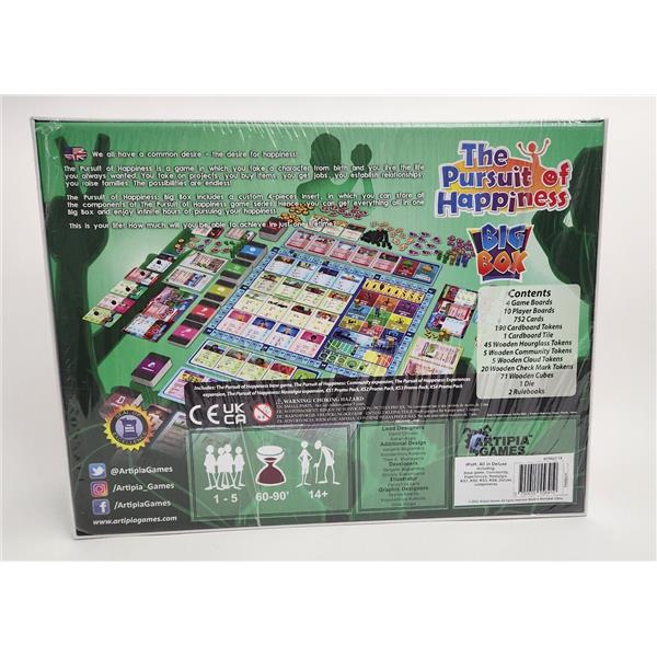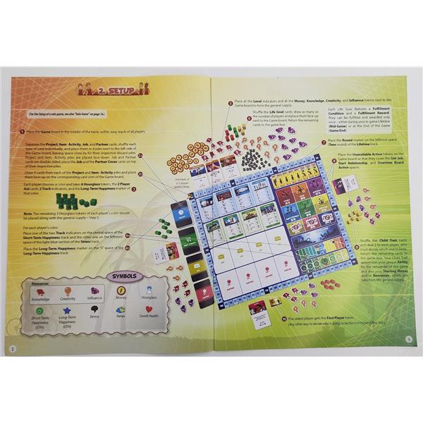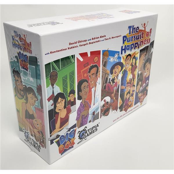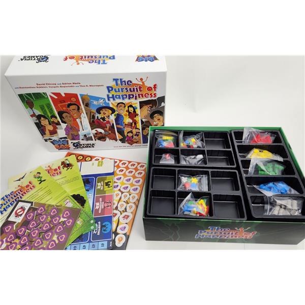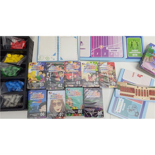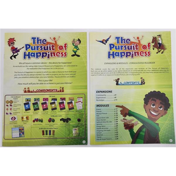 The Pursuit of Happiness: Community expansion introduces the concept of the local community. Community cards, a new type of cards, allow you to engage in various community events and choose their outcome, with a new board included on which to place the new cards and keep track of your Popularity score. More Projects, Items, Activities, Jobs, Partners, Life Goals and Child Traits are also included to enhance your game experience, as well as enough material for a 5th player to join your games.