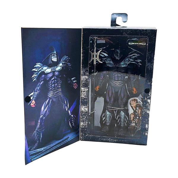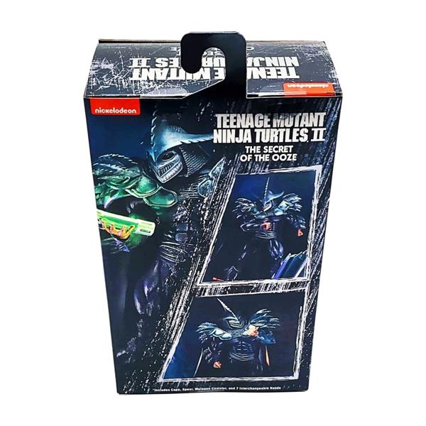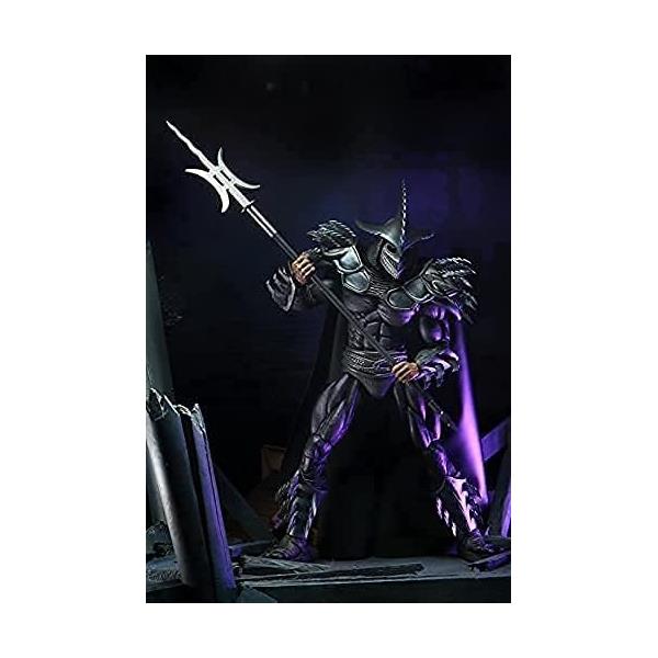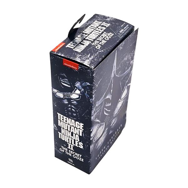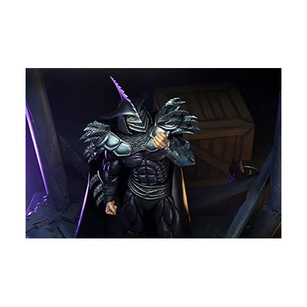 The Shredder lives! After suffering defeat at the hands of the turtles, the leader of the Foot Clan plots his revenge. Desperate to vanquish his foes, Shredder consumes the last bit of mutagen to transform himself into the hulking Super Shredder. Inspired by the classic mail-away figure from 1991, Super Shredder stands over 8" tall and is painted in an all-new dark deco scheme. He comes with a brand-new fabric cape, interchangeable hands, a bishamon yari, and a TGRI canister. Comes in special metallic finish window box packaging.