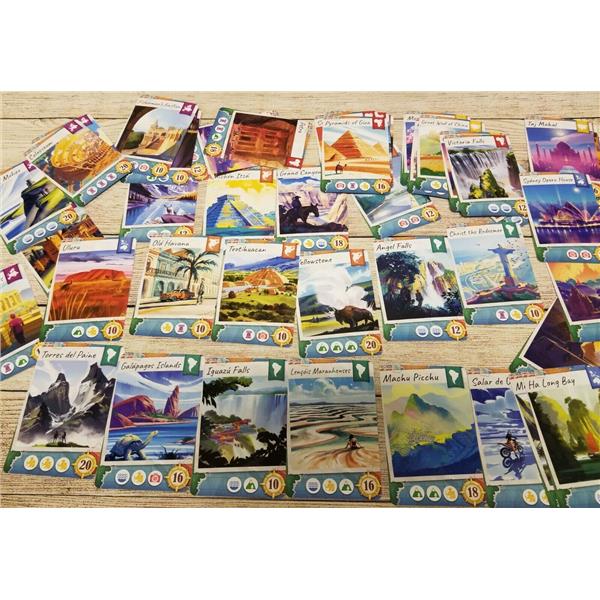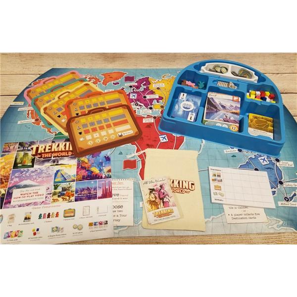 In Trekking the World 2-5 players compete to be the ultimate globe trotter by racing to visit world-renowned locations and collect rare souvenirs along the way. The game spotlights 48 real-world destinations, each beautifully illustrated by artists from around the globe and accompanied with educational passages to inspire your next getaway. Each piece was created to remind us there's a great wide world beyond the confines of our everyday lives, waiting for us.