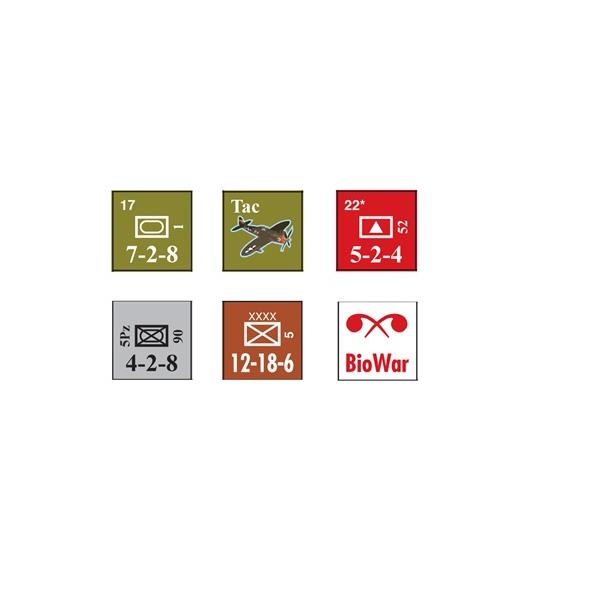 Each extra-large-hex on the 34x22” mapsheet equals 11 miles (18 km) when measured from side to opposite side. Each game turn represents between two and 15 days, depending on the exact time of year of each one. That is, as the autumn weather worsens, and attrition and the inevitable declines in soldier morale and force-robustness take their tolls, each game turn comes to represent a longer period of time. That approach allows for the smooth building into the system of what would otherwise be burdensome factors of weather, ground conditions, operational tempo, etc. Every ground unit represents a division or division-equivalent (176 large-size NATO-style).