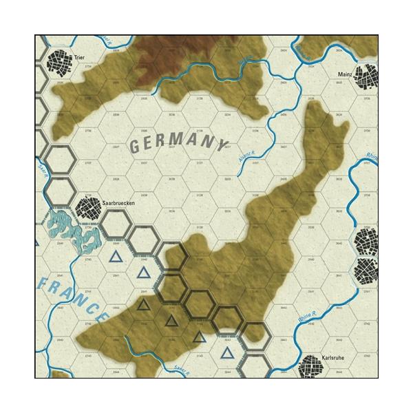 Each game turn represents three days. Each hex on the West Map represents eight miles from side to opposite side, while the corresponding figure on the East Map is 16 miles. Each counter typically represents an army or occasionally a corps.