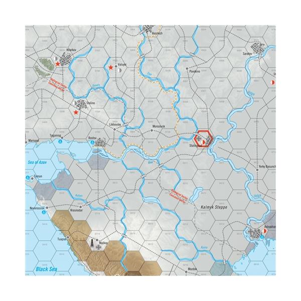 Peaks of the Caucasus simulates the German offensive in the southern Soviet Union in 1942, and the ensuing Soviet Counteroffensive. The German objective was initially the Caucasus oilfields, but the campaign turned into a struggle for the city of Stalingrad on the Volga. The game uses a variant of the “Boots system” to model higher echelon command-control and logistics, and their impact on the theater of operations. The map is divided into two sectors: Stalingrad and the Caucasus. Various Command markers will activate a player's forces on one or the other (and sometimes both) Fronts. Effectively, the player is in command of theater forces and must operate within historically based high command interference in operations.