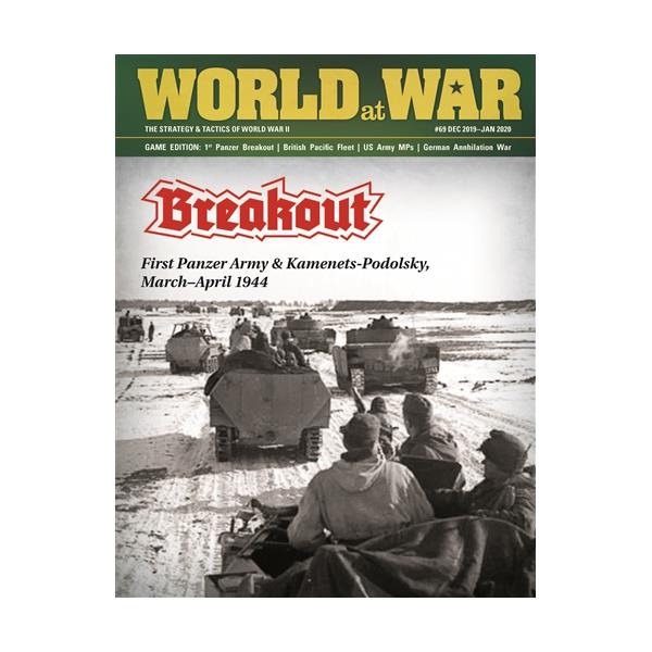 Breakout: First Panzer Army is a two player game that allows players to examine the operational challenges in the battles between the Soviet and German Armies in the northwest Ukraine in March and April 1944, leading to 1st Panzer Army Pocket. Most units are represented as corps-sized units with German garrison units represented as regiments or brigades. Each combat unit displays several types of information: nationality and type, organizational size, attack factor, defense factor, historical identification and substitute counter status.