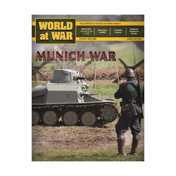 Munich War 1938 is a two player operational level simulation of a hypothetical World War II in Europe that began in the fall of 1938. The assumption is that the British and French governments did not back down at the September 1938 Munich conference when Hitler demanded the Sudetenland from Czechoslovakia and instead went to war with the Third Reich. The ensuing conflict finds the powers partially prepared for war. The objective is for each alliance to seize a position from which it can then dominate Europe in the ensuing war. In Munich War one player commands the Axis, controlling Germany and the countries aligned with Berlin. The other is the Allied player, who controls the anti-German forces. Each hex on the map represents 65 kilometers or 40 miles. Units are at the corps and army level. Each game turn represents one week of operations with the game covering the first two months of the war.