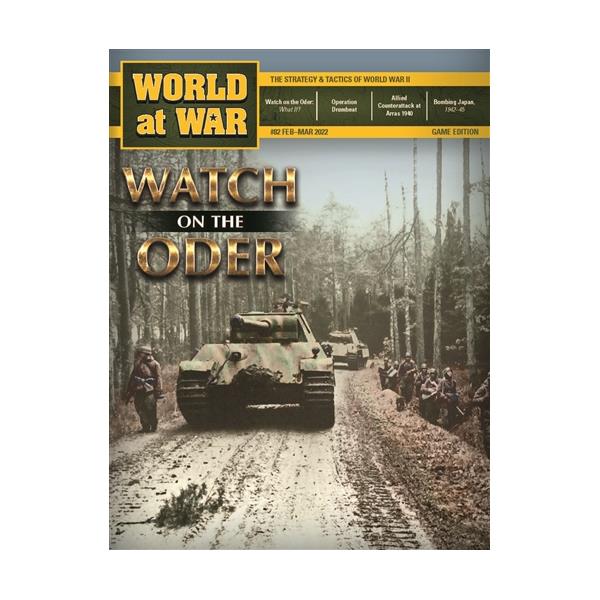 Watch on the Oder: January 1945 is a hypothetical two-player game allowing the players to examine the strategic possibilities inherent in the campaign that may have taken place had Hitler decided to send the forces he used historically in the Ardennes to the eastern front. Both sides’ orders of battle are entirely historic within that context. Each of the eight game turns represents four days, and each large hex on the map equals 20 miles. The map runs from the Oder River on the west to the Riga-Pinsk line on the east. Units are German corps and Soviet armies. The turn sequence is I-Go-U-Go, but both players decide if their force will move and fight or fight and move. Playing time is about three hours, and is easily adapted for solitaire play. Complexity is low-medium. The German has to strike hard and fast at the beginning in order to weaken the inevitable Soviet counteroffensive.