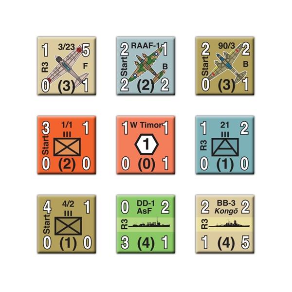 Netherlands East Indies: 1941 to 1942 is an operational wargame of the campaign in 1941-42 in which the Japanese seized control of the Dutch colonial empire in the South Pacific. NEI is a combined naval-air-land campaign, in which operational capabilities can be decisive. The game system shows the effects of various operations over the course of a scenario. Players conduct Actions which encompass discrete combat, logistical, intelligence and other operations. A player can conduct one or more Actions per turn. All units in the game use a similar combat system. The system shows the interaction of naval, air and land forces. At stake: the resources of the South Seas and the gateways to the Indian Ocean and Australia. Components: 22x34 inch map, 176 inch counters