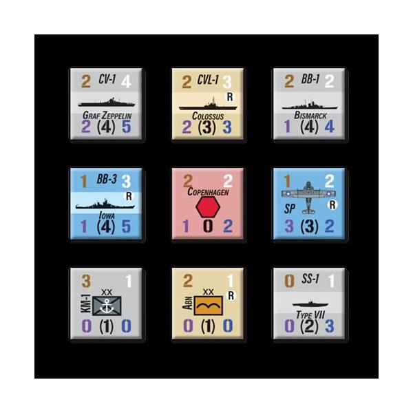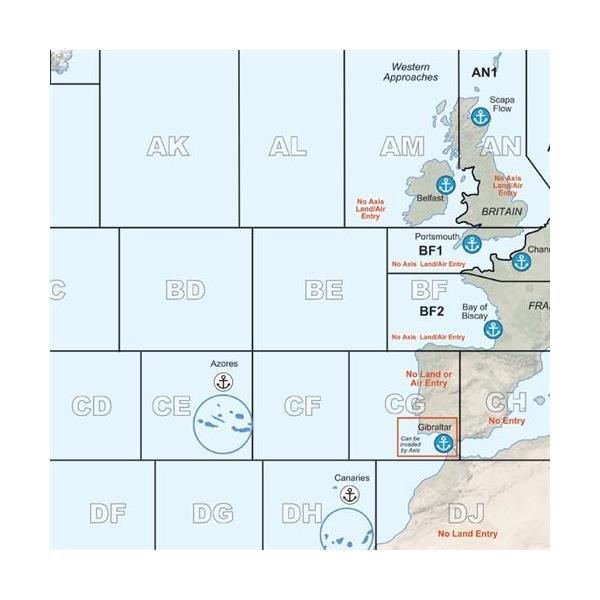 Each area on the map is about 550 miles across. Each turn represents one month of operations. Ship units represent two fleet aircraft carriers, divisions of two or three battleships, four to eight cruisers, flotillas of 19-40 destroyers, or various numbers of other ship types. Most ground units in the game represent corps or divisions. Aircraft units represent six to twelve squadrons of aircraft.